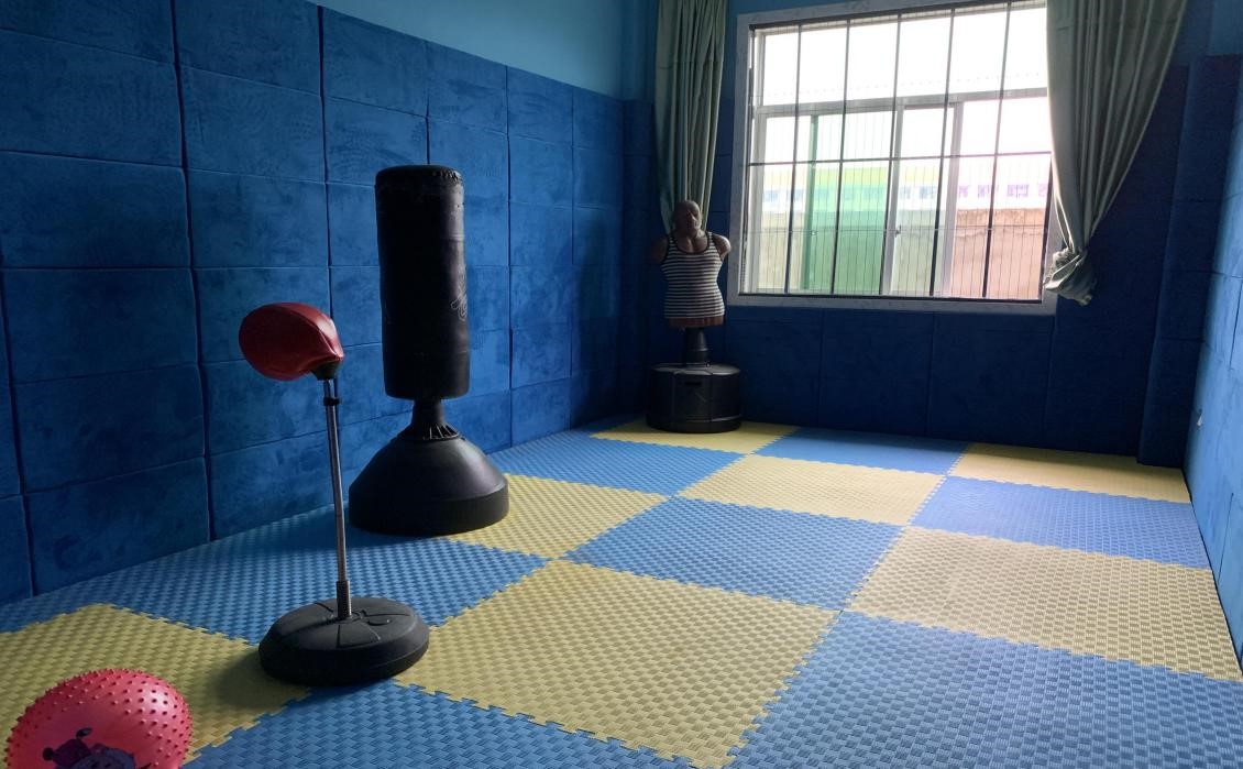 最后,心灵义工带领同学们参观了心理宣泄室,为同学们介绍了心理咨询室的环境,蓝黄相间的积木板垫和蓝色的墙纸都能们会给人以舒适欢悦的心理暗示。紧接着向同学们介绍了心理咨询室,之后心灵义工引领同学们参观了团辅活动室,活动室内木板的地面提供了很好的活动场地,上绿下白的墙壁给人以和平宁静的心理暗示。活动室里还有小黑板,呼啦圈,若干个气球等一系列道具。并重点的向同学门介绍了团辅活动如何开展的成功经验。