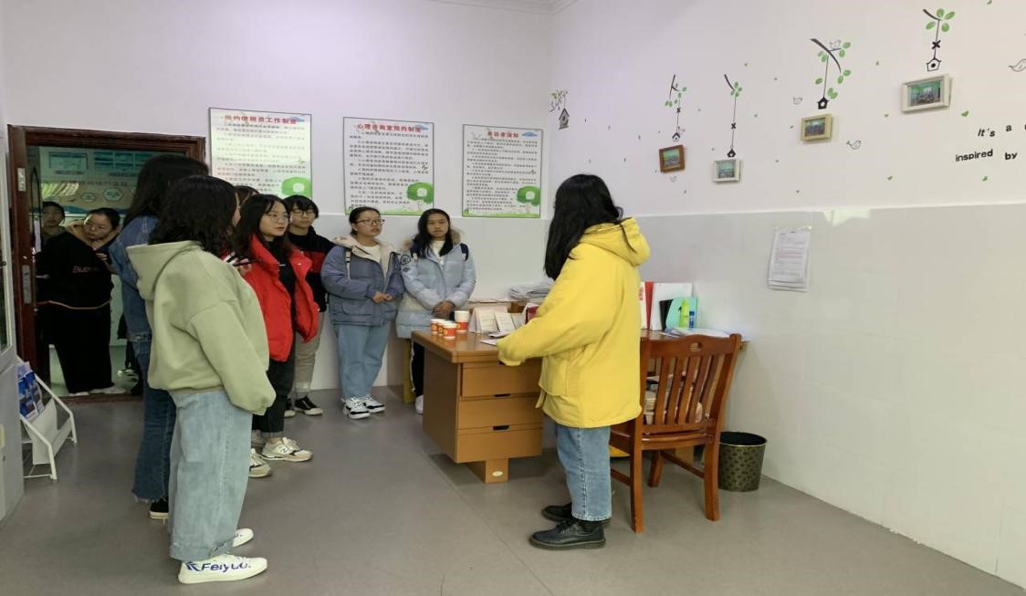 首先,心灵义工积极向同学们介绍了值班登记室,并告诉同学们如何进行心理预约的登记方式,介绍后并询问同学们有没有还不了解的过程等。