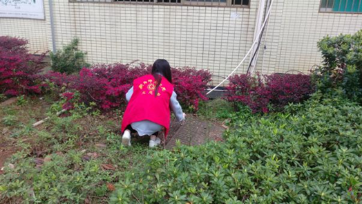志愿者的清理范围包括草坪中的烟蒂、果皮纸屑、白色垃圾和牛皮藓。活动进行时天空中还下着小雨,可是每个志愿者都非常认真的在打扫,丝毫没有抱怨。在清理过程中遇到比较脏的地方志愿者们也没有退缩,而是慢慢的清理。与此同时社实部的成员也全程在场打扫并督促志愿者清理平时没有注意到的地方。下午两点半时,卫生区清理结束,社实部助理检查完各个组的打扫情况并确认没有垃圾后,志愿者解散离开。